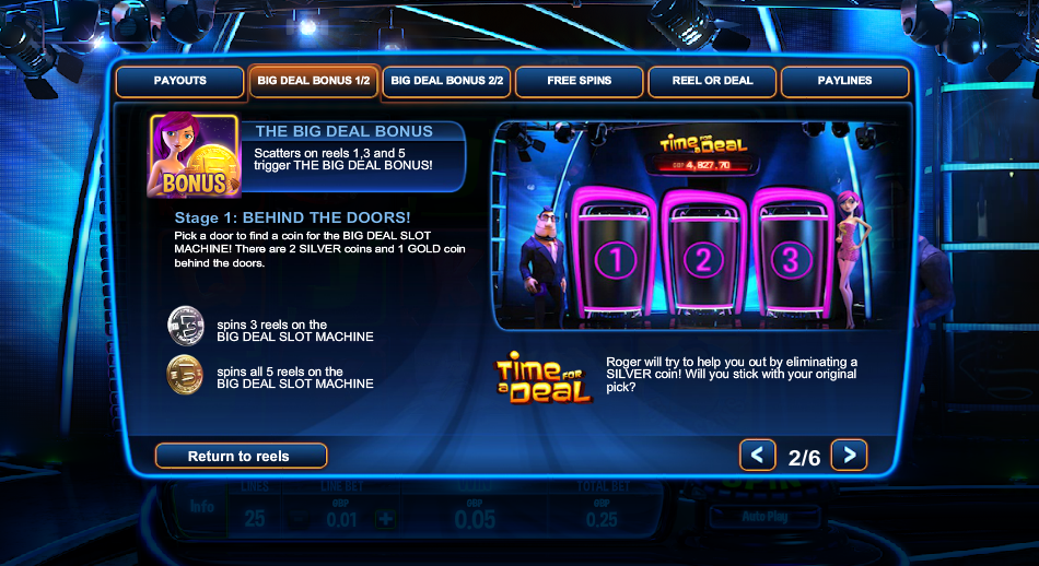 Det finns flera olika funktioner som kan hjälpa dig med att vinna både större och oftare. Dessa olika funktioner kan du låsa upp direkt i spelet. Time for a Deal bjuder på free spins, storbonus, reel or deal bonus och även en stor progressiv jackpot.